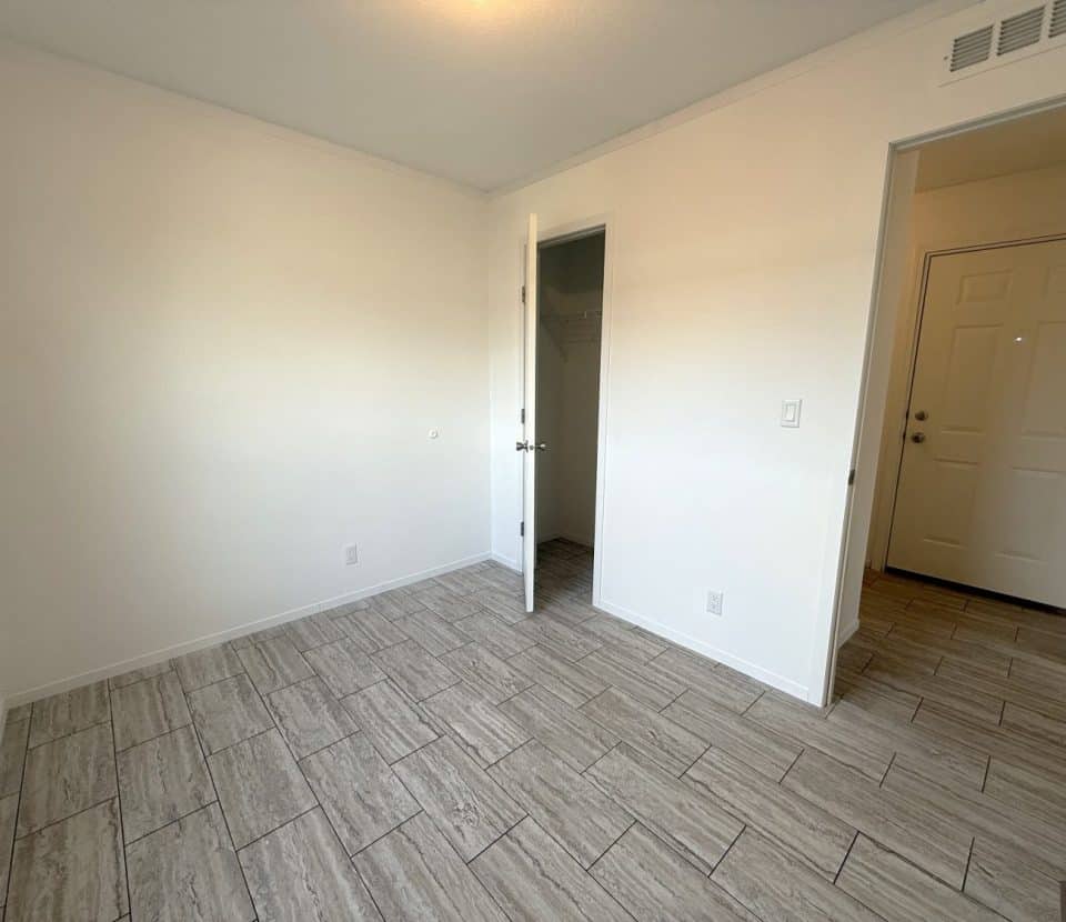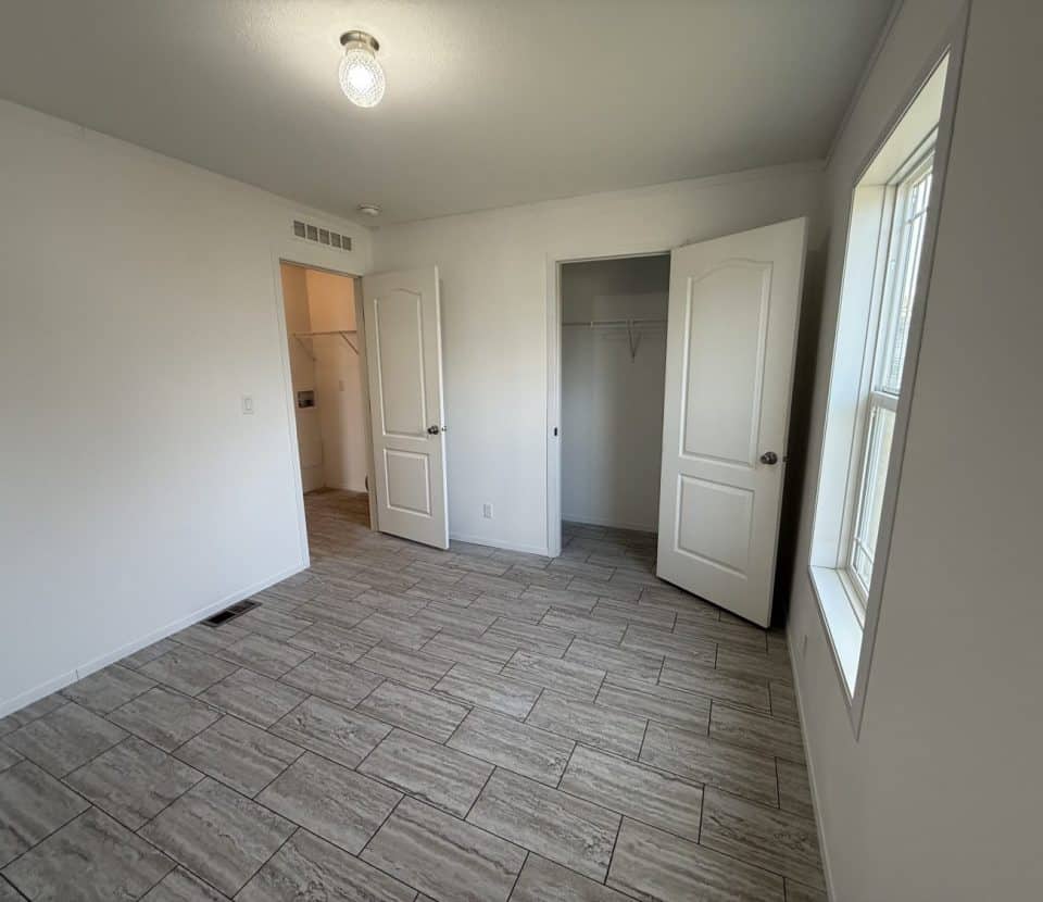 The primary bedroom is privately located just off the kitchen and features a generous walk in closet and a private en suite bathroom. The additional bedrooms are placed on the opposite side of the home, creating a desirable split floor plan that enhances privacy.